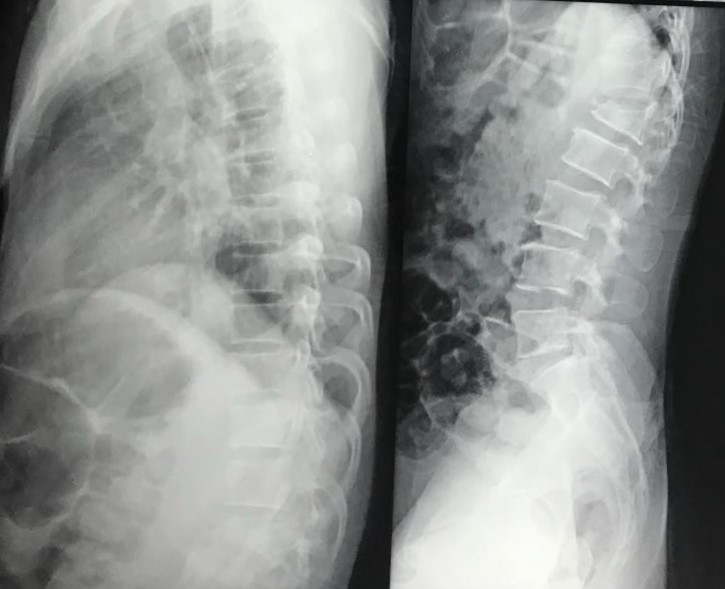kyphosis 104 degree and scoliosis 43degrees.